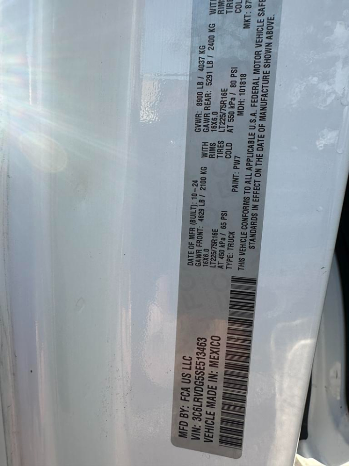 Vehicle Inquiry for 2025 RAM ProMaster Cargo Van Tradesman 2500 High Roof 159" WB w/Pass Seat